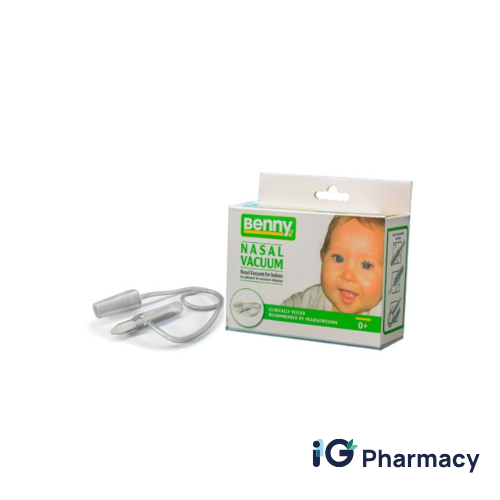 The Benny Nasal Aspirator Set 0+ is a safe, pediatrician-recommended nasal suction device designed for newborns and young children. It connects to a household vacuum cleaner (with controlled low pressure) to remove nasal mucus gently and efficiently in seconds. The aspirator’s internal design regulates suction into a series of soft pulses, making it entirely safe for infants from birth and extremely effective in clearing congestion caused by colds, allergies, or infections.