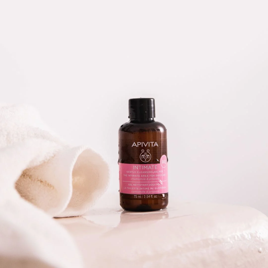 Apivita Intimate Daily gentle, sulfate-free daily gel specially formulated to offer all-day comfort and freshness while preventing and soothing irritations.