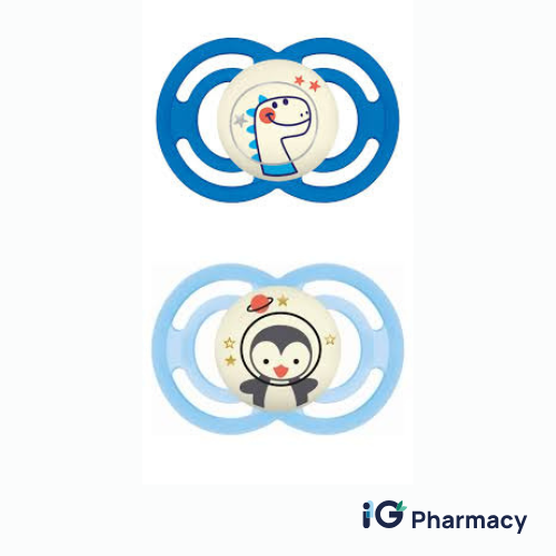 The MAM Perfect Night Pacifier is specially designed for babies 6 months and older, combining comfort, hygiene, and night-time convenience. Its glow-in-the-dark button makes it easy to find in dim lighting, while the ultra-thin SkinSoft™ silicone teat supports natural jaw and tooth development.