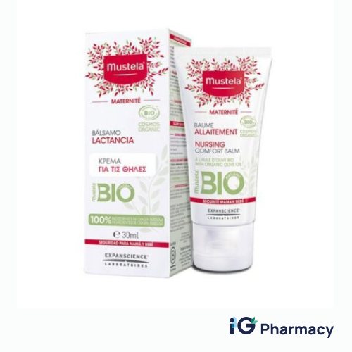 The Mustela Nursing Comfort Balm forms a protective moisturizing barrier with a restoring effect on cracked or sensitized nipples, keeping skin comfortable during breastfeeding.