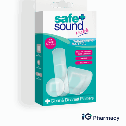 The Safe & Sound Clear & Discreet Plasters are transparent, breathable wound dressings designed to provide subtle protection for minor cuts, scrapes, and blisters. Their nearly invisible design makes them ideal for use on visible areas like the face, hands, or arms, allowing for discreet healing.