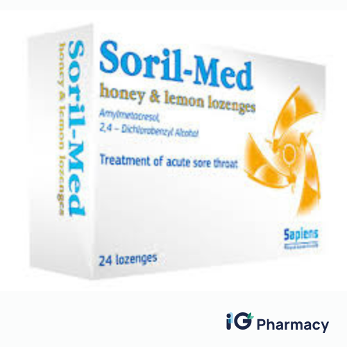 Soril-Med Honey & Lemon Lozenges are medicated lozenges formulated to provide relief from sore throat symptoms in adults and children over 6 years of age.
