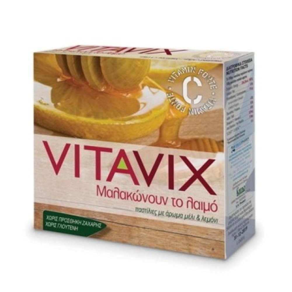 Vitavix Honey & Lemon Pastilles (45g) are sugar-free, gluten-free lozenges designed to soothe sore throats and alleviate coughs. Enriched with vitamin C, they support the immune system and provide relief from throat irritation caused by colds, prolonged speaking, dry coughs, and smoking. These pastilles possess antiseptic and soothing properties, promoting rapid vasodilation of the pharynx and immediate expectoration. They are free from artificial colorings, making them suitable for individuals with dietary restrictions.